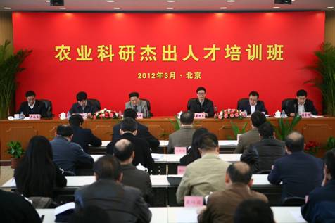 为深入学习贯彻中央人才强国、人才强农方针政策,推进现代农业人才支撑计划的实施,加快培养农业科研杰出人才及其创新团队,3月14~16日,农业部在北京举办全国首批农业科研杰出人才培训班。农业部党组成员、人事劳动司司长梁田庚,中组部人才局副巡视员胡建华出席培训班开班式并分别就国家人才发展规划、当前农业农村人才工作作了专题辅导报告。